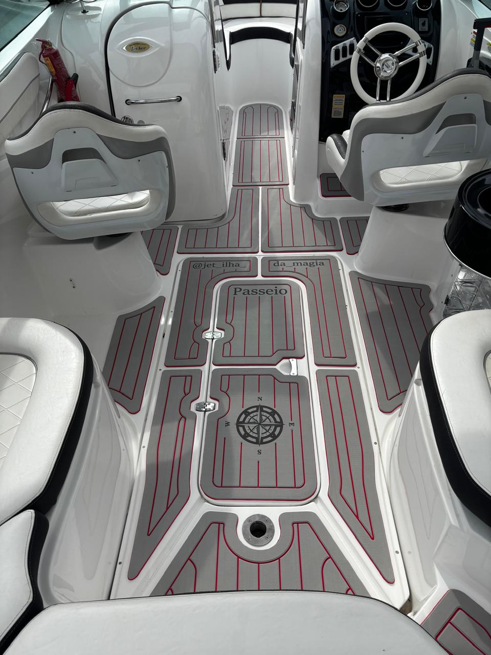 Também conhecido como tapete náutico EVA, o piso Camon Deck para lancha Focker 240 é desenvolvido sob medida com tecnologia CNC de alta precisão. Fabricado em EVA náutico de alta densidade, oferece acabamento premium, conforto térmico e segurança total, mesmo com o piso molhado. Ideal para quem busca qualidade, estética e durabilidade no revestimento da embarcação.