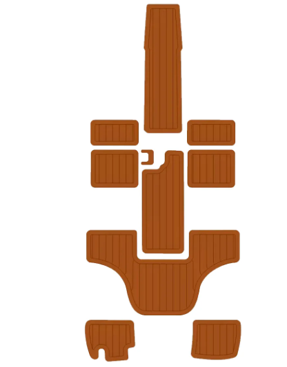 Cada piso Camon Deck é cortado exclusivamente para o formato do barco do cliente, garantindo encaixe milimétrico e visual alinhado ao design da embarcação.