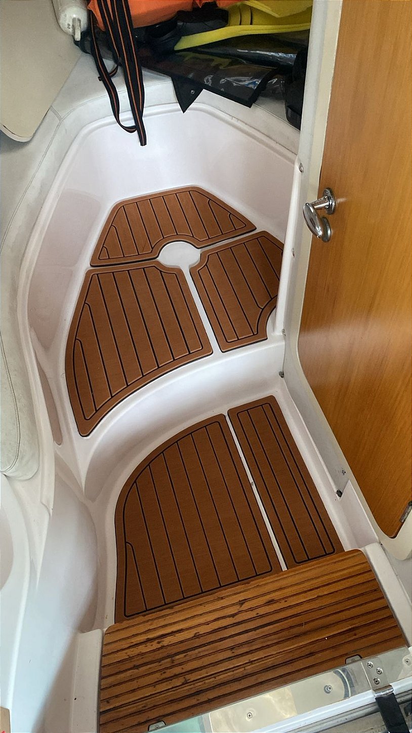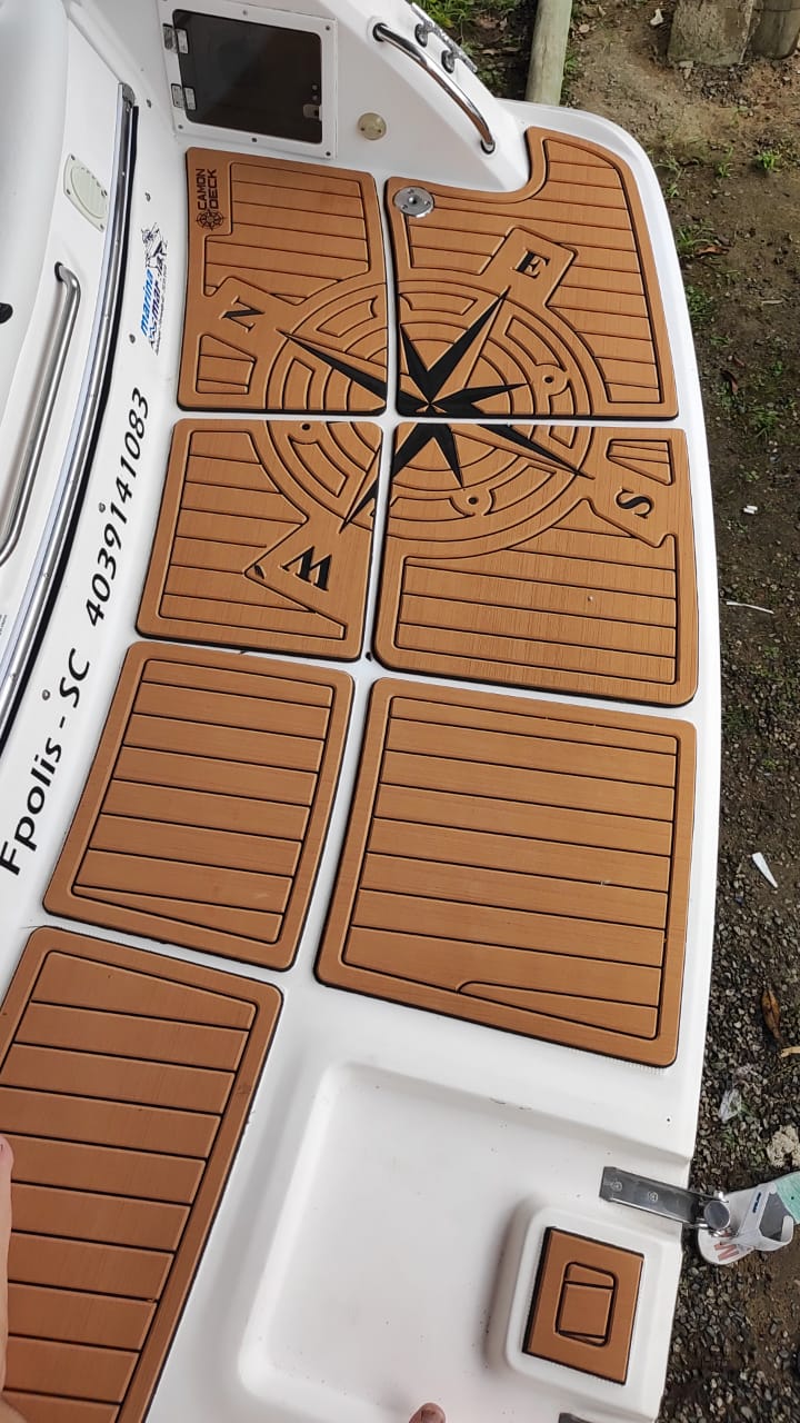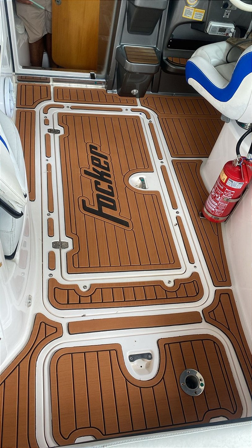 Também conhecido como tapete náutico EVA, o piso Camon Deck para lancha Focker 265 Cabinada é desenvolvido sob medida com tecnologia CNC de alta precisão. Fabricado em EVA náutico de alta densidade, oferece acabamento premium, conforto térmico e segurança total, mesmo com o piso molhado. Ideal para quem busca qualidade, estética e durabilidade no revestimento da embarcação.