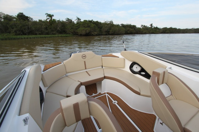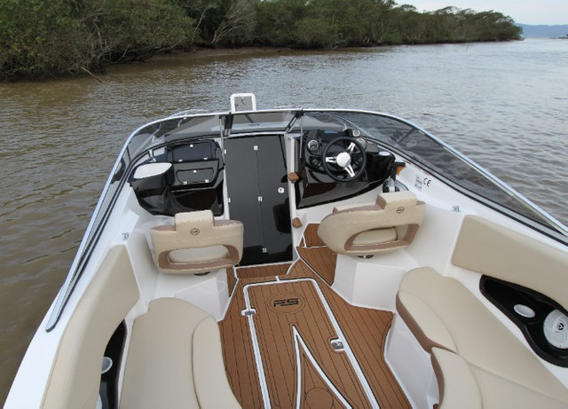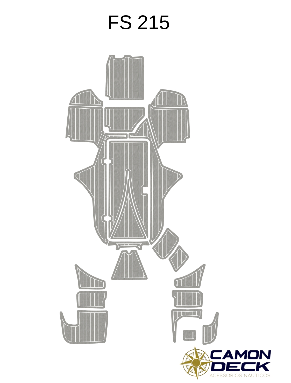 Também conhecido como tapete náutico EVA, o piso Camon Deck para lancha FS 215 é desenvolvido sob medida com tecnologia CNC de alta precisão. Fabricado em EVA náutico de alta densidade, oferece acabamento premium, conforto térmico e segurança total, mesmo com o piso molhado. Ideal para quem busca qualidade, estética e durabilidade no revestimento da embarcação.